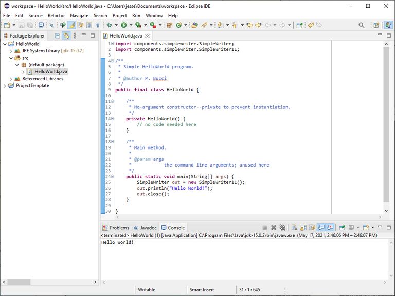 Creating a Java project and program from scratch was pretty laborious. Let's see how using the ProjectTemplate project makes things simpler and faster.