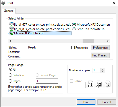 Printing to PDF on Windows