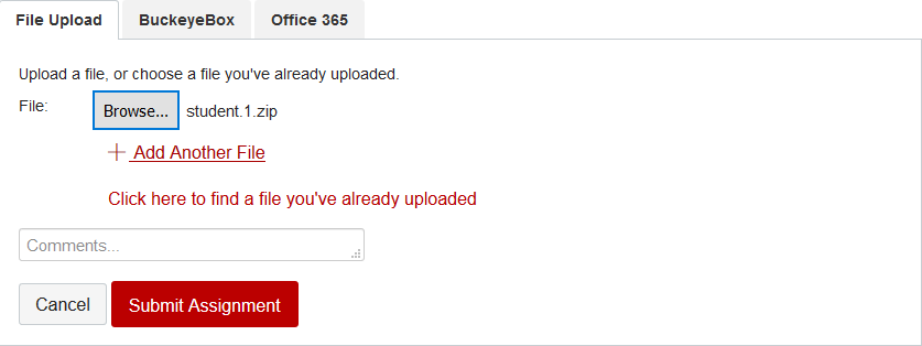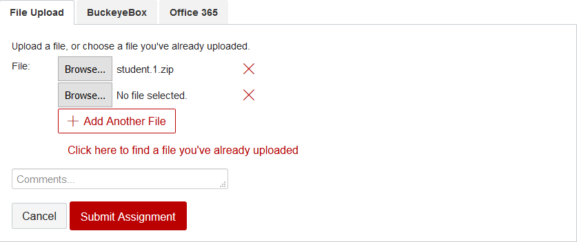 First upload your project ZIP file as the first file in your submission. After it is uploaded, click on "Add Another File".
