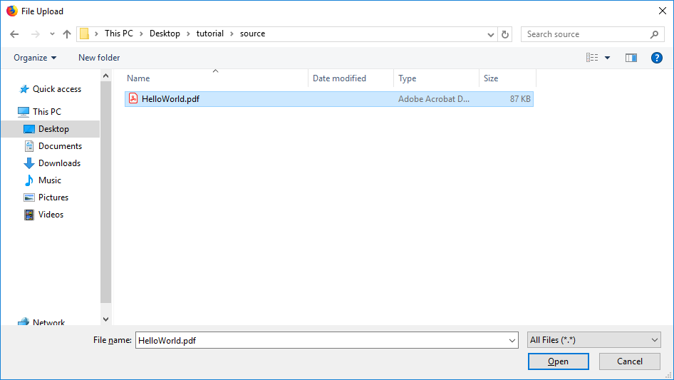 This will open a save dialogue. Name your PDF file the same as your source file and then save it in your desired location.